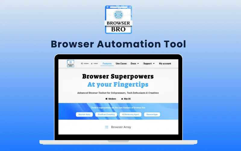 You can use Browser Bro to view multiple sites at once via the Browser Array, automate tasks with Shorthand Scripting, & monitor websites using AI Agents.