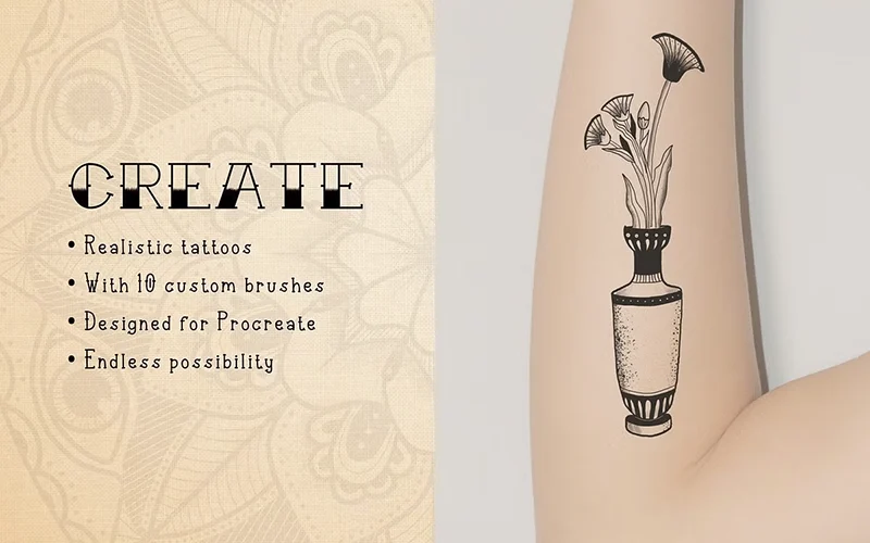 Here is a bundle of Procreate Ink Tattoo Brush, Manga Procreate Brush, Procreate Backgrounds, and Procreate Mandala Template! What else can we even ask for in one bundle?