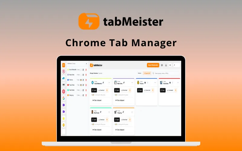 TabMeister is a professional-grade Chrome tab manager that turns hundreds of messy tabs into an organized, searchable dashboard.